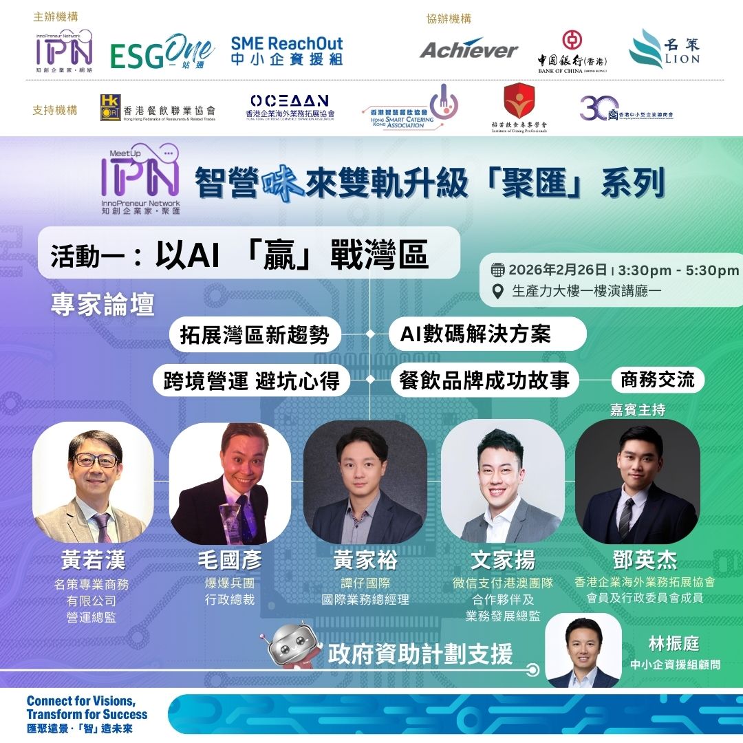 在兩場精彩的「聚匯」中,您將發現AI技術如何有效助企業降低成本並實踐「可持續」營運;您更可以於活動中了解政府資助措施,並與同行建立聯繫,共同應對不斷變化的消費者需求。